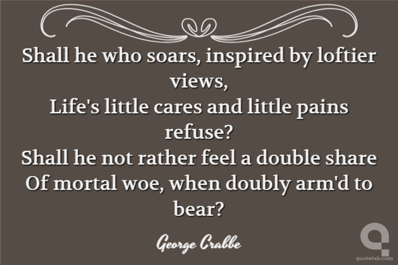 Shall he who soars, inspired by loftier views, Life's little cares and little pains refuse? Shall he not rather feel a double share Of mortal woe, when doubly arm'd to bear?