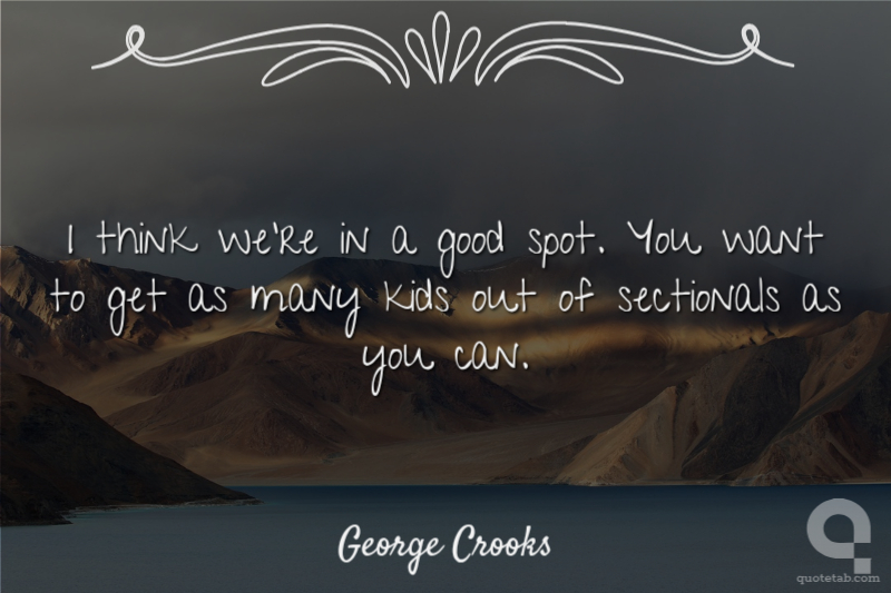 I think we're in a good spot. You want to get as many kids out of sectionals as you can.