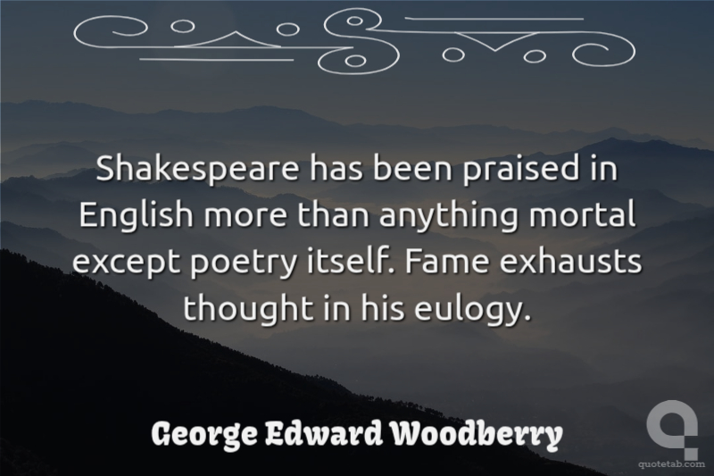 Shakespeare has been praised in English more than anything mortal except poetry itself. Fame exhausts thought in his eulogy.