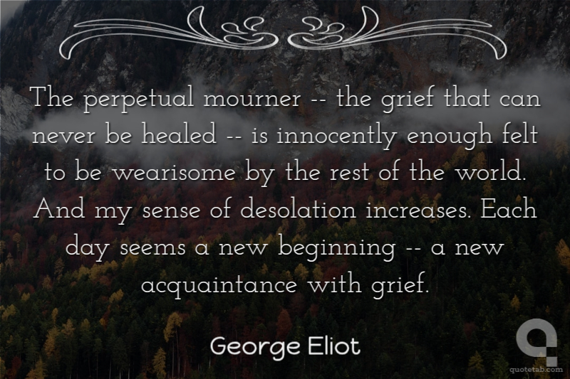 The perpetual mourner -- the grief that can never be healed -- is innocently enough felt to be wearisome by the rest of the world. And my sense of desolation increases. Each day seems a new beginning -- a new acquaintance with grief.