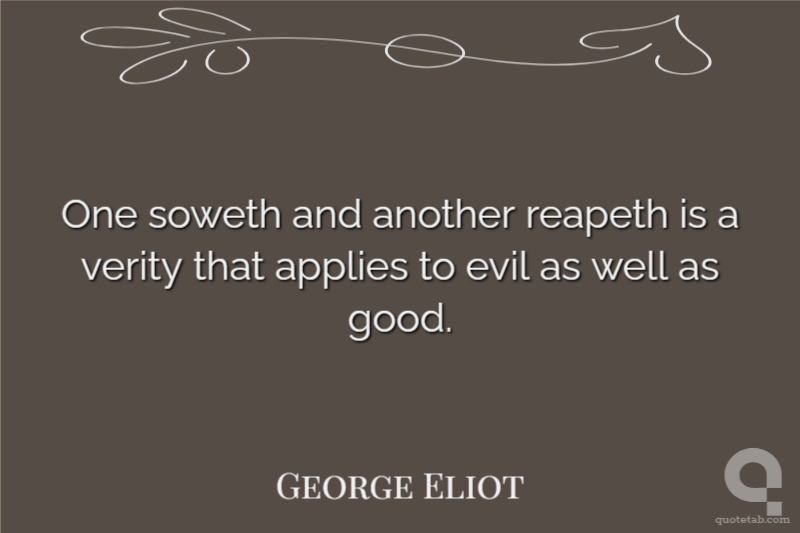 One soweth and another reapeth is a verity that applies to evil as well as good.
