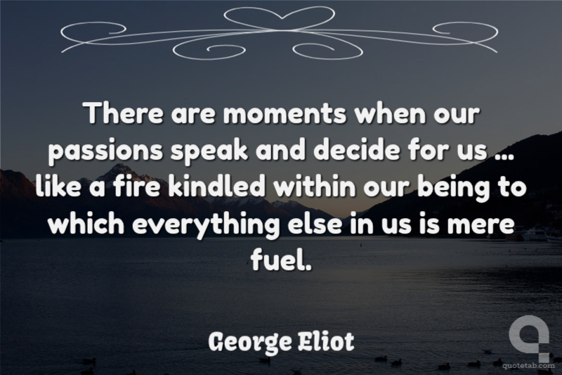There are moments when our passions speak and decide for us ... like a fire kindled within our being to which everything else in us is mere fuel.
