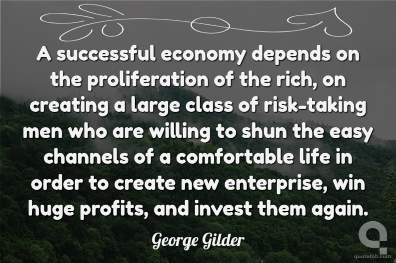 A successful economy depends on the proliferation of the rich, on creating a large class of risk-taking men who are willing to shun the easy channels of a comfortable life in order to create new enterprise, win huge profits, and invest them again.