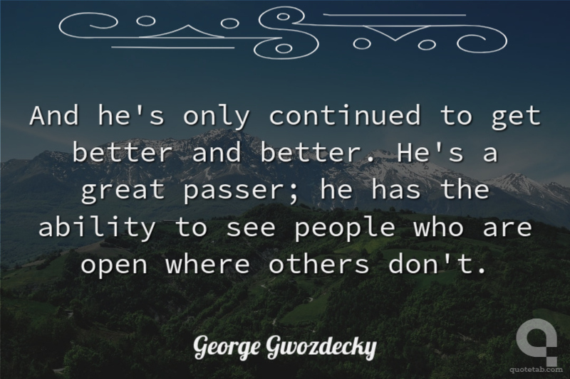 And he's only continued to get better and better. He's a great passer; he has the ability to see people who are open where others don't.