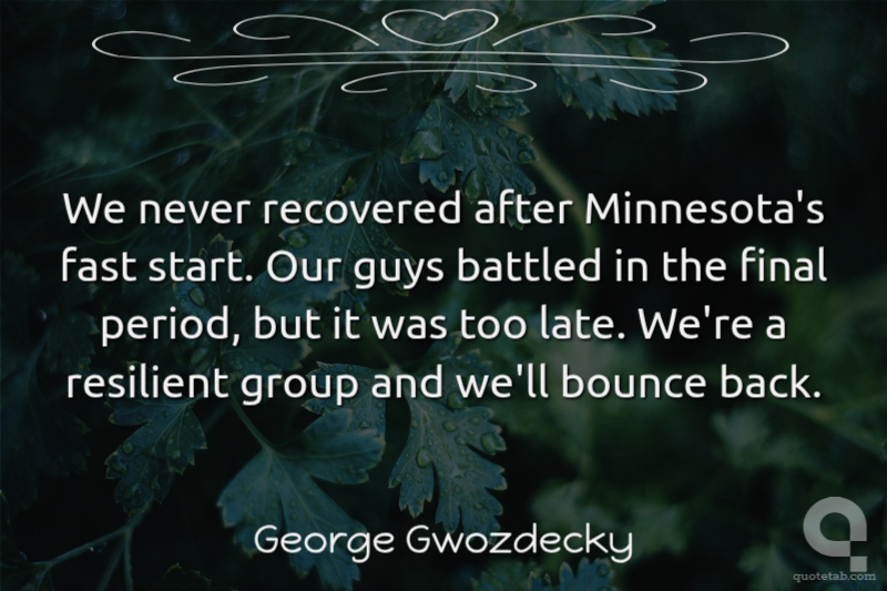 We never recovered after Minnesota's fast start. Our guys battled in the final period, but it was too late. We're a resilient group and we'll bounce back.
