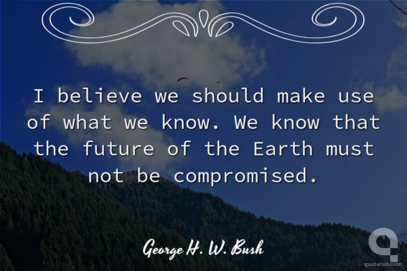 I believe we should make use of what we know. We know that the future of the Earth must not be compromised.