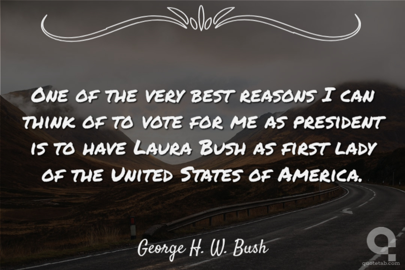One of the very best reasons I can think of to vote for me as president is to have Laura Bush as first lady of the United States of America.