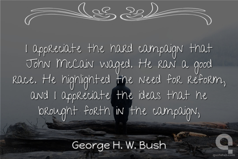 I appreciate the hard campaign that John McCain waged. He ran a good race. He highlighted the need for reform, and I appreciate the ideas that he brought forth in the campaign,