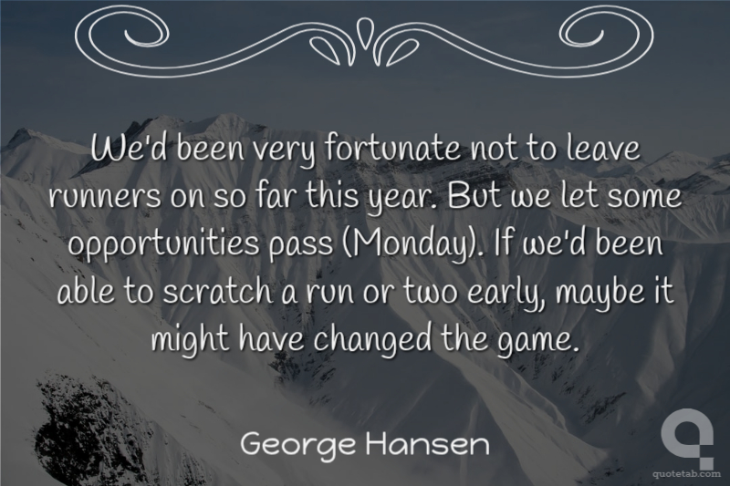 We'd been very fortunate not to leave runners on so far this year. But we let some opportunities pass (Monday). If we'd been able to scratch a run or two early, maybe it might have changed the game.