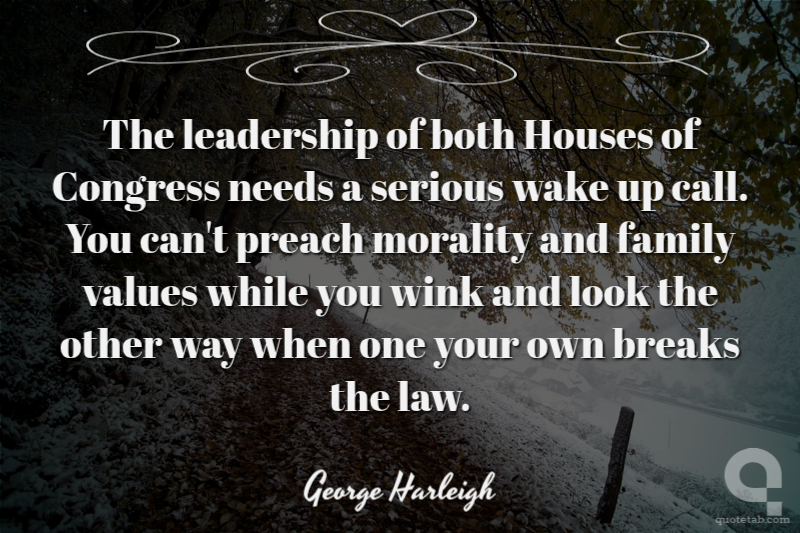 The leadership of both Houses of Congress needs a serious wake up call. You can't preach morality and family values while you wink and look the other way when one your own breaks the law.