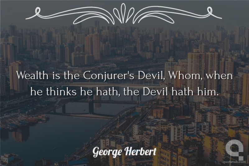 Wealth is the Conjurer's Devil, Whom, when he thinks he hath, the Devil hath him.