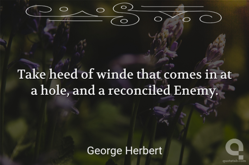 Take heed of winde that comes in at a hole, and a reconciled Enemy.