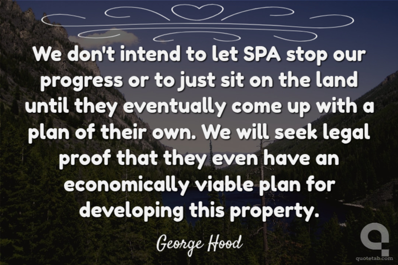 We don't intend to let SPA stop our progress or to just sit on the land until they eventually come up with a plan of their own. We will seek legal proof that they even have an economically viable plan for developing this property.