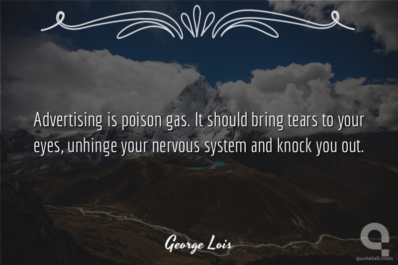 Advertising is poison gas. It should bring tears to your eyes, unhinge your nervous system and knock you out.