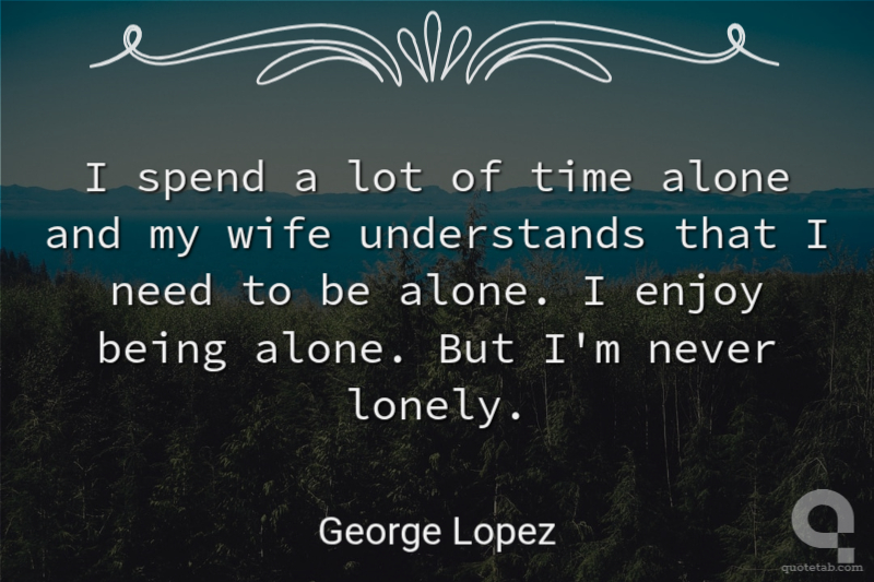 I spend a lot of time alone and my wife understands that I need to be alone. I enjoy being alone. But I'm never lonely.