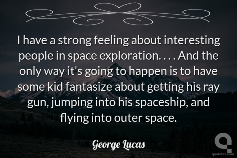 I have a strong feeling about interesting people in space exploration. . . . And the only way it's going to happen is to have some kid fantasize about getting his ray gun, jumping into his spaceship, and flying into outer space.