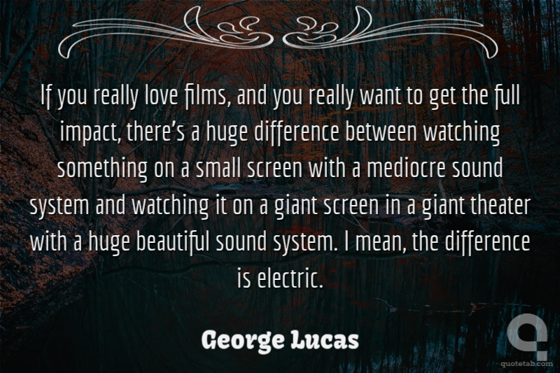 If you really love films, and you really want to get the full impact, there's a huge difference between watching something on a small screen with a mediocre sound system and watching it on a giant screen in a giant theater with a huge beautiful sound system. I mean, the difference is electric.