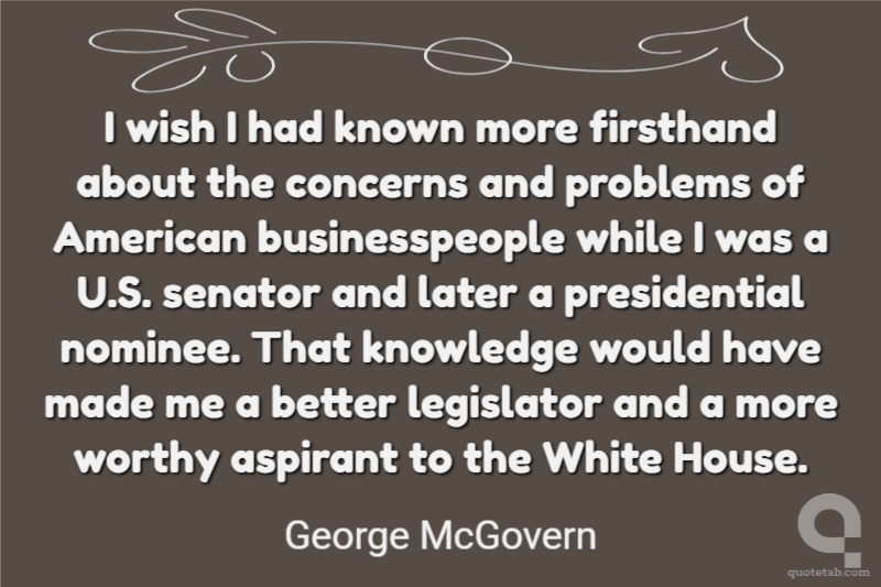 I wish I had known more firsthand about the concerns and problems of American businesspeople while I was a U.S. senator and later a presidential nominee. That knowledge would have made me a better legislator and a more worthy aspirant to the White House.