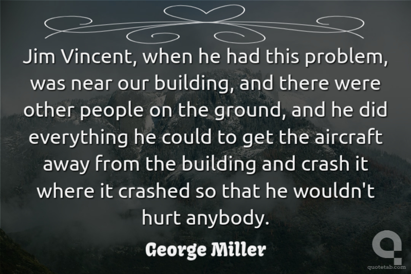 Jim Vincent, when he had this problem, was near our building, and there were other people on the ground, and he did everything he could to get the aircraft away from the building and crash it where it crashed so that he wouldn't hurt anybody.