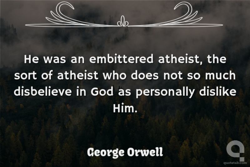 He was an embittered atheist, the sort of atheist who does not so much disbelieve in God as personally dislike Him.