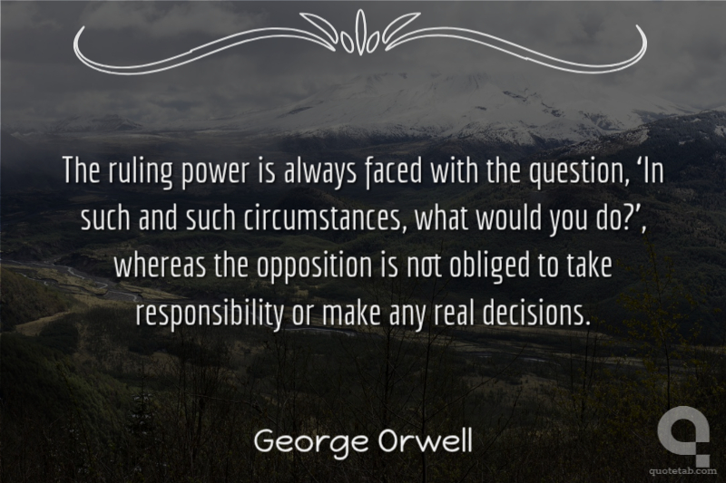 The ruling power is always faced with the question, ‘In such and such circumstances, what would you do?’, whereas the opposition is not obliged to take responsibility or make any real decisions.