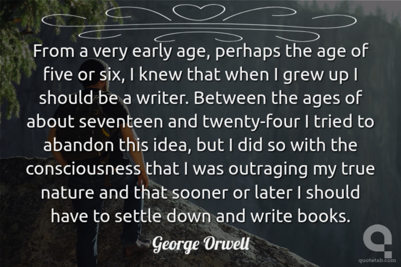 From a very early age, perhaps the age of five or six, I knew that when I grew up I should be a writer. Between the ages of about seventeen and twenty-four I tried to abandon this idea, but I did so with the consciousness that I was outraging my true nature and that sooner or later I should have to settle down and write books.