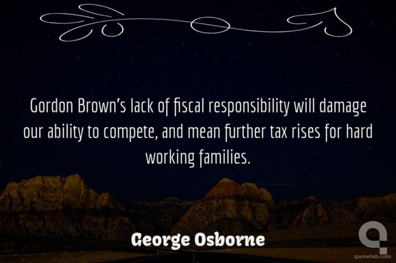 Gordon Brown's lack of fiscal responsibility will damage our ability to compete, and mean further tax rises for hard working families.
