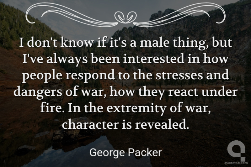 I don't know if it's a male thing, but I've always been interested in how people respond to the stresses and dangers of war, how they react under fire. In the extremity of war, character is revealed.