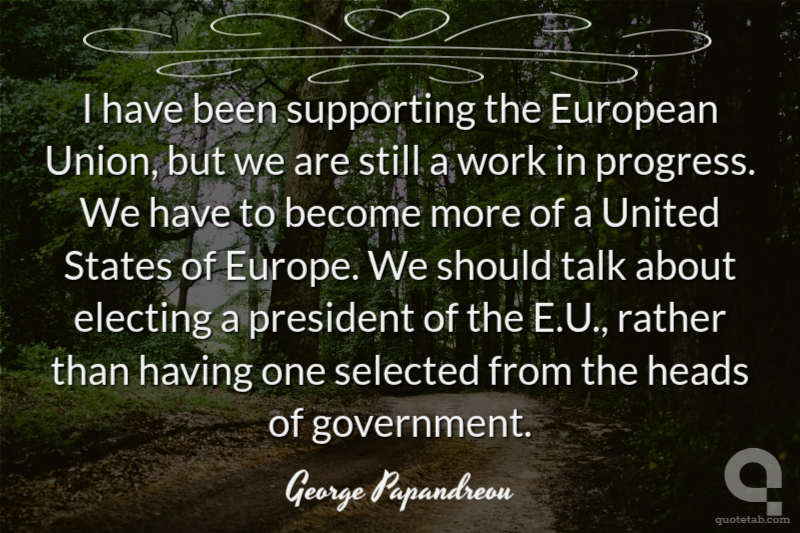 I have been supporting the European Union, but we are still a work in progress. We have to become more of a United States of Europe. We should talk about electing a president of the E.U., rather than having one selected from the heads of government.