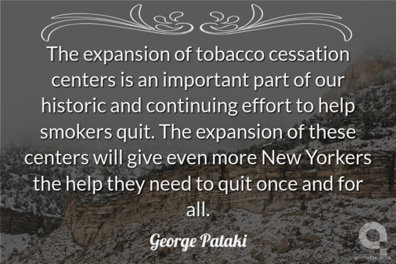 The expansion of tobacco cessation centers is an important part of our historic and continuing effort to help smokers quit. The expansion of these centers will give even more New Yorkers the help they need to quit once and for all.