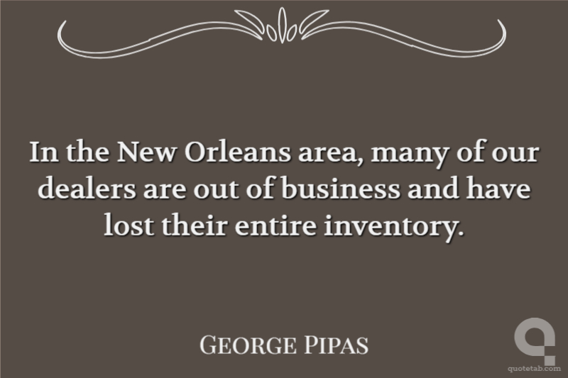 In the New Orleans area, many of our dealers are out of business and have lost their entire inventory.