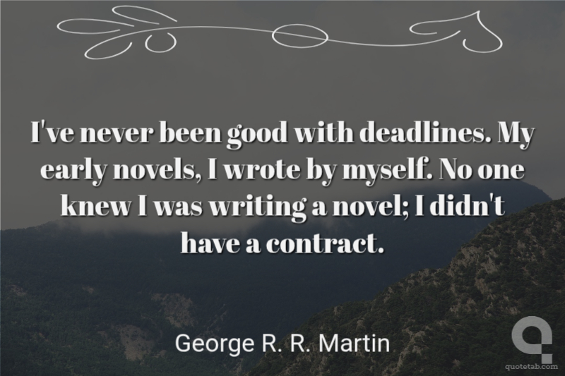 I've never been good with deadlines. My early novels, I wrote by myself. No one knew I was writing a novel; I didn't have a contract.