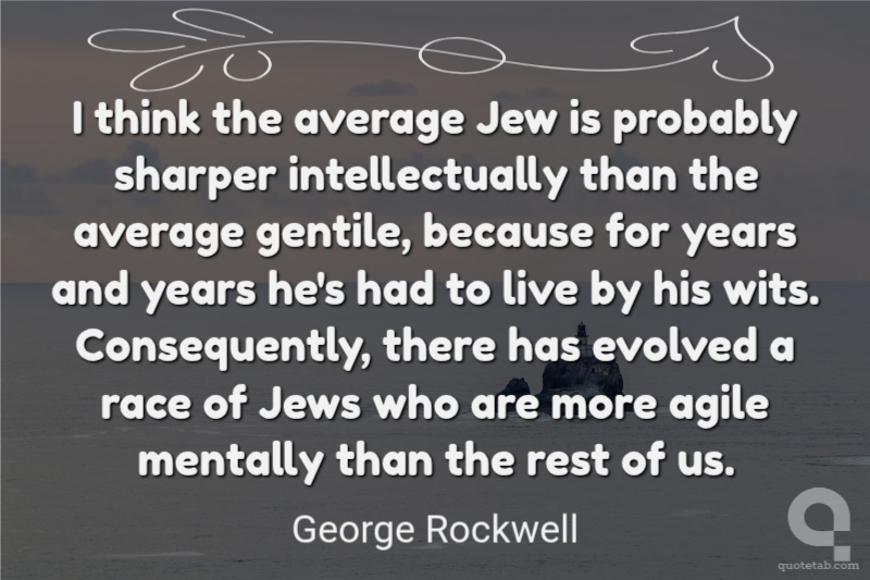I think the average Jew is probably sharper intellectually than the average gentile, because for years and years he's had to live by his wits. Consequently, there has evolved a race of Jews who are more agile mentally than the rest of us.