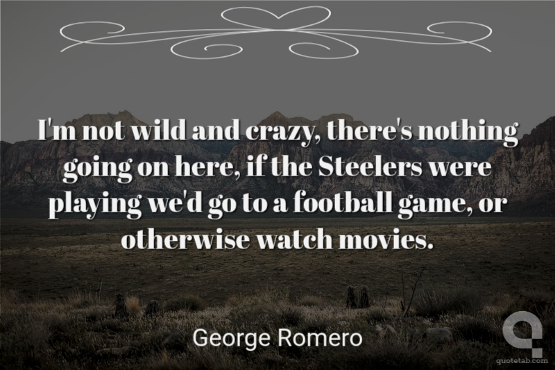 I'm not wild and crazy, there's nothing going on here, if the Steelers were playing we'd go to a football game, or otherwise watch movies.