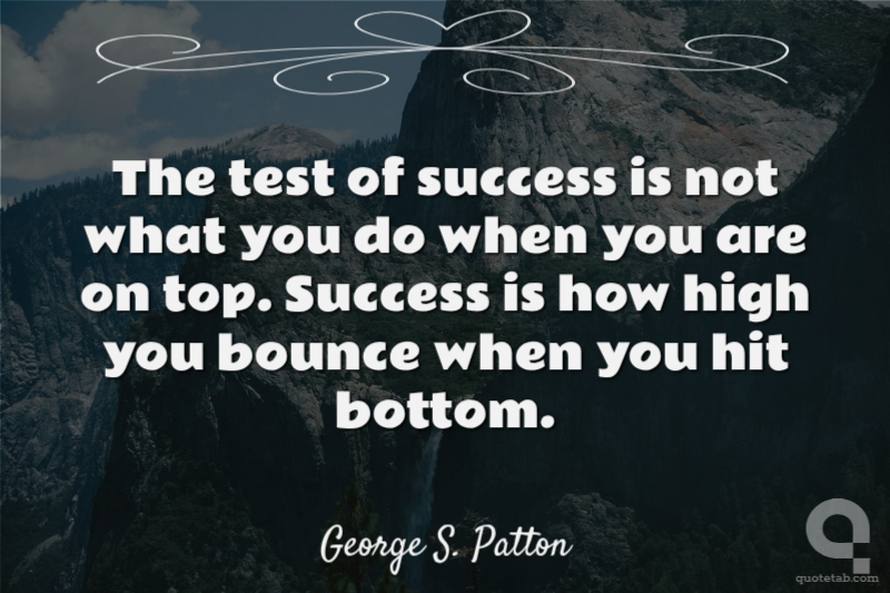 The test of success is not what you do when you are on top. Success is how high you bounce when you hit bottom.