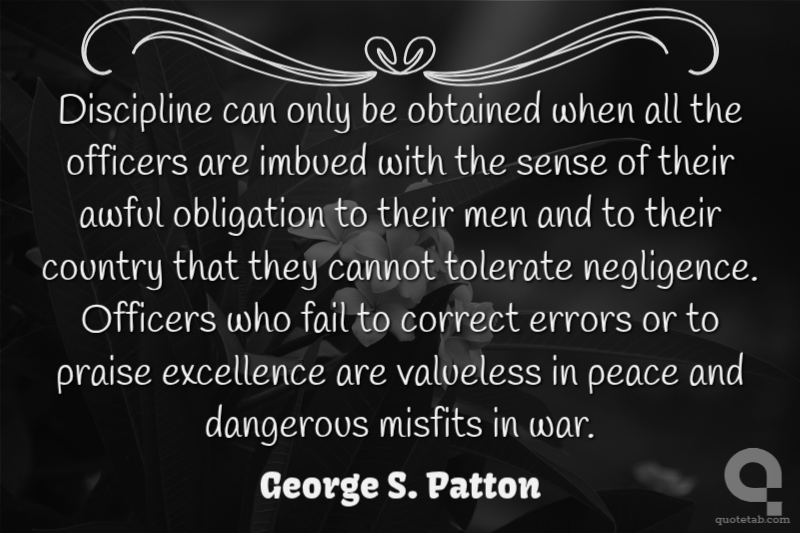 Discipline can only be obtained when all the officers are imbued with the sense of their awful obligation to their men and to their country that they cannot tolerate negligence. Officers who fail to correct errors or to praise excellence are valueless in peace and dangerous misfits in war.