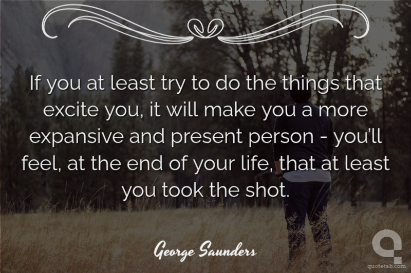 If you at least try to do the things that excite you, it will make you a more expansive and present person - you’ll feel, at the end of your life, that at least you took the shot.