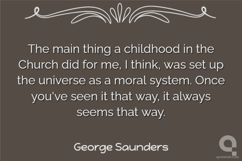 The main thing a childhood in the Church did for me, I think, was set up the universe as a moral system. Once you've seen it that way, it always seems that way.