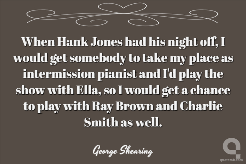 When Hank Jones had his night off, I would get somebody to take my place as intermission pianist and I'd play the show with Ella, so I would get a chance to play with Ray Brown and Charlie Smith as well.