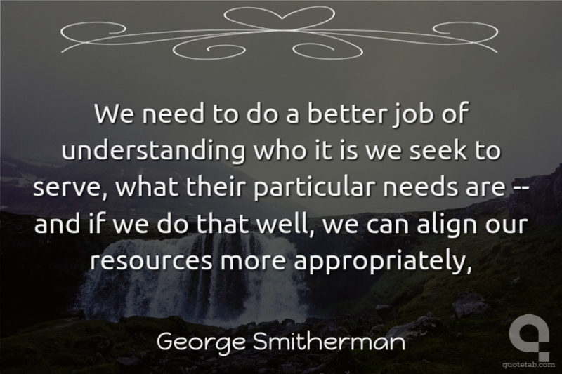 We need to do a better job of understanding who it is we seek to serve, what their particular needs are -- and if we do that well, we can align our resources more appropriately,