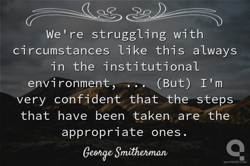 We're struggling with circumstances like this always in the institutional environment, ... (But) I'm very confident that the steps that have been taken are the appropriate ones.