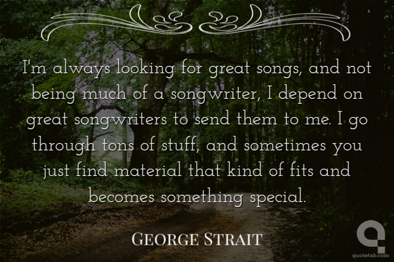 I'm always looking for great songs, and not being much of a songwriter, I depend on great songwriters to send them to me. I go through tons of stuff, and sometimes you just find material that kind of fits and becomes something special.