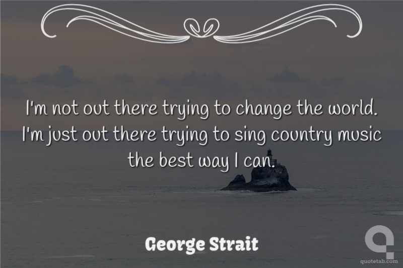 I'm not out there trying to change the world. I'm just out there trying to sing country music the best way I can.