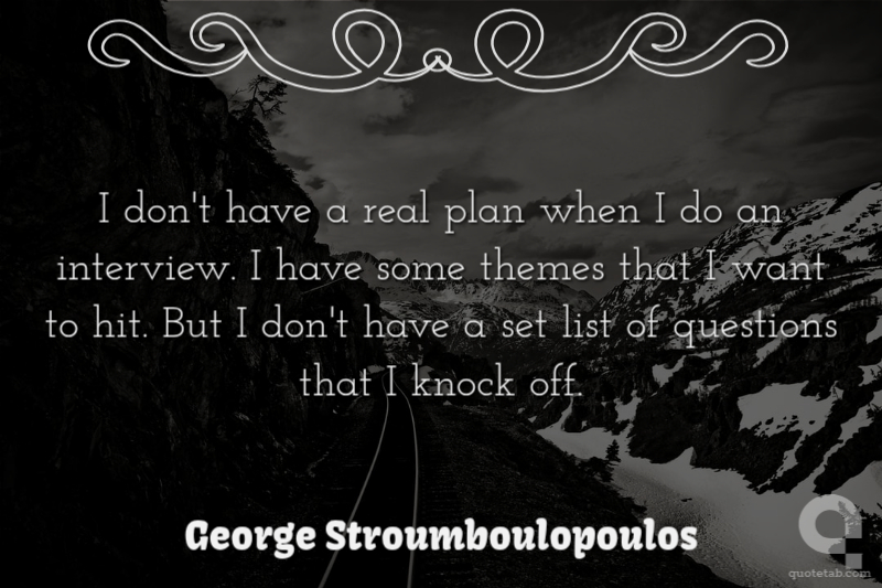 I don't have a real plan when I do an interview. I have some themes that I want to hit. But I don't have a set list of questions that I knock off.