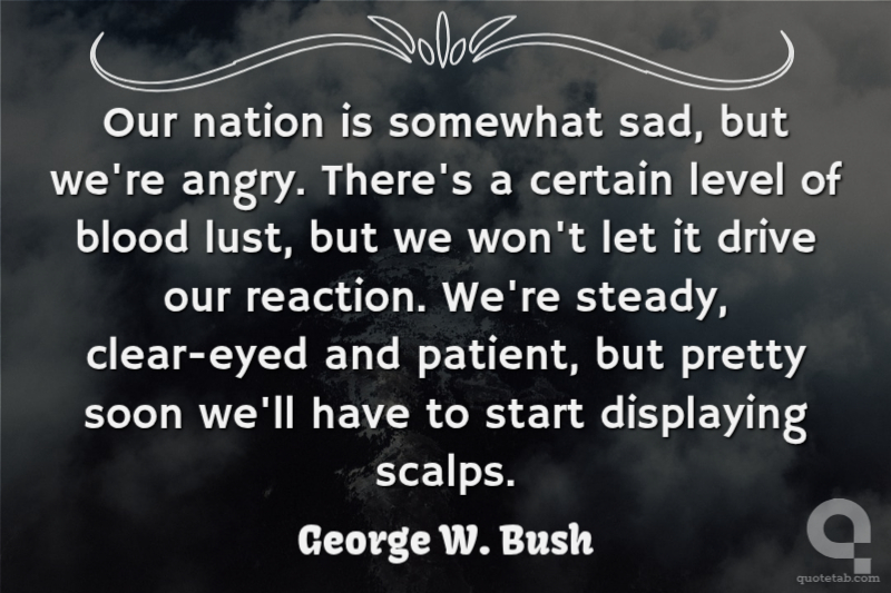 Our nation is somewhat sad, but we're angry. There's a certain level of blood lust, but we won't let it drive our reaction. We're steady, clear-eyed and patient, but pretty soon we'll have to start displaying scalps.