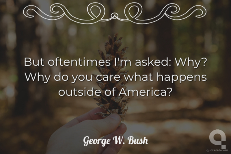 But oftentimes I'm asked: Why? Why do you care what happens outside of America?