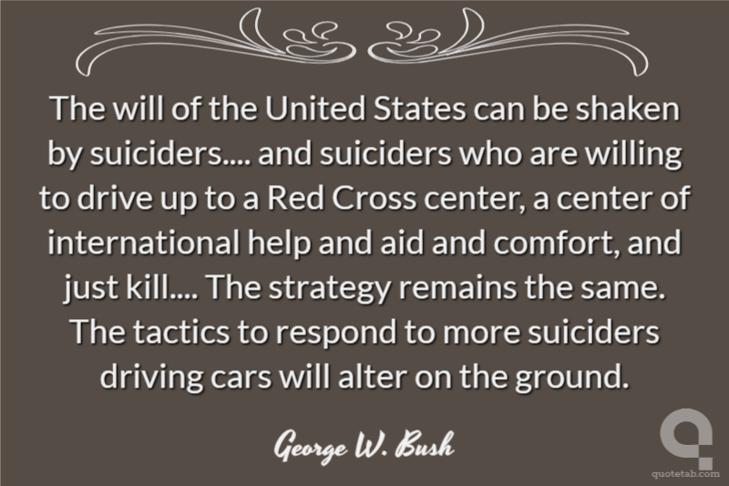 The will of the United States can be shaken by suiciders.... and suiciders who are willing to drive up to a Red Cross center, a center of international help and aid and comfort, and just kill.... The strategy remains the same. The tactics to respond to more suiciders driving cars will alter on the ground.