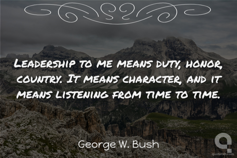 Leadership to me means duty, honor, country. It means character, and it means listening from time to time.