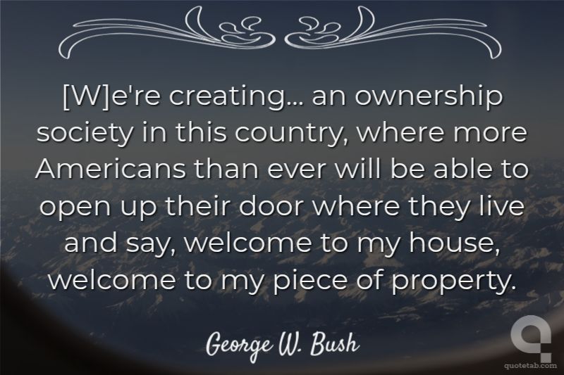 [W]e're creating... an ownership society in this country, where more Americans than ever will be able to open up their door where they live and say, welcome to my house, welcome to my piece of property.