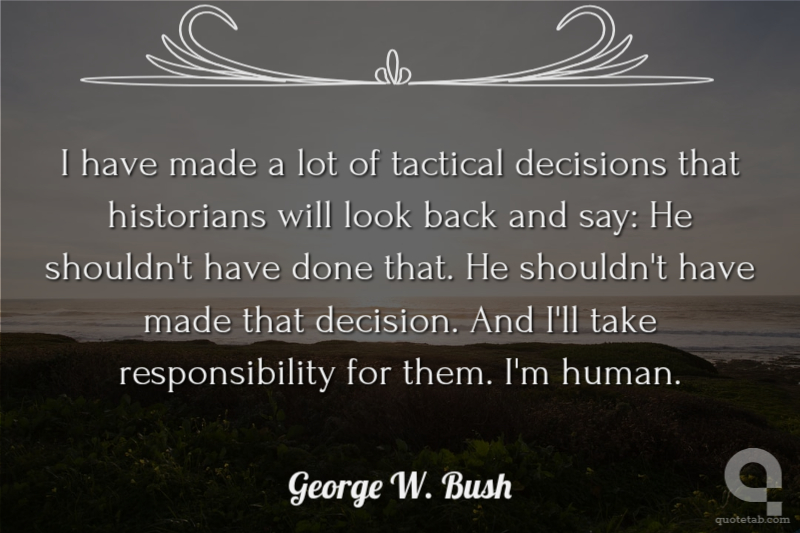 I have made a lot of tactical decisions that historians will look back and say: He shouldn't have done that. He shouldn't have made that decision. And I'll take responsibility for them. I'm human.